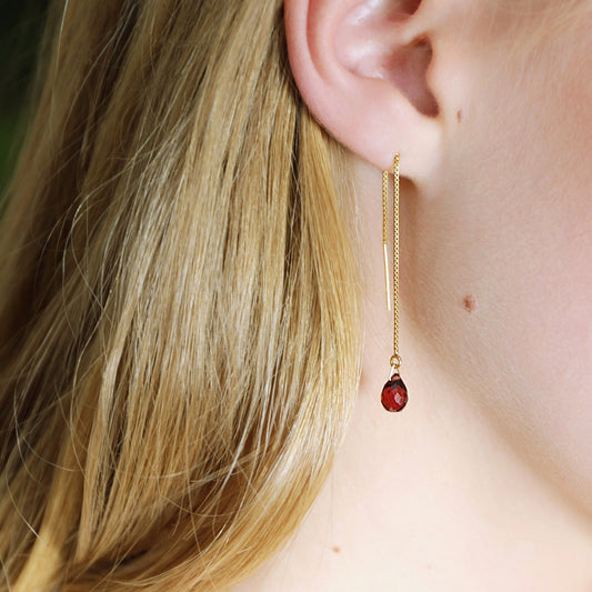 Garnet Drop Threader Earrings