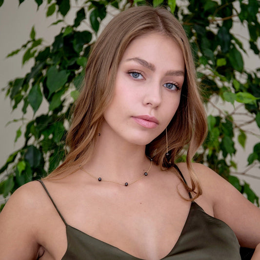 Dainty Black Pearl Necklace Choker with 14k Gold Chain · JUNO