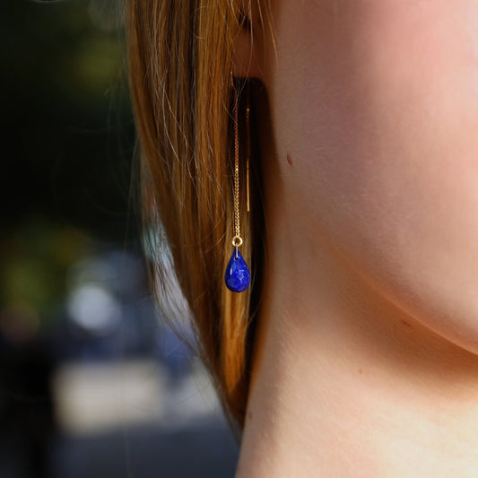 Lapis Lazuli Drop Threader Earrings