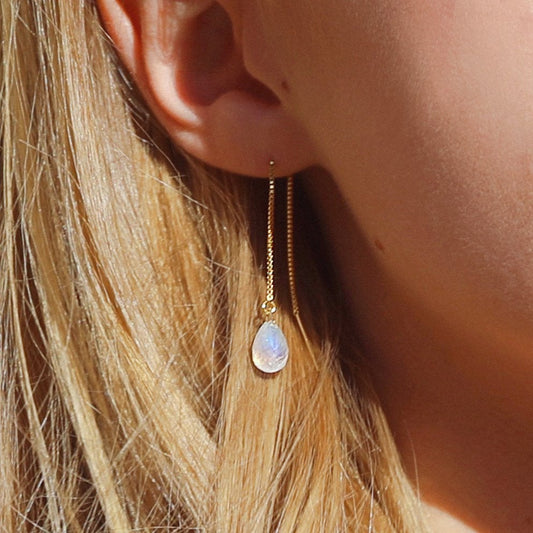 Rainbow Moonstone Drop Threader Earrings