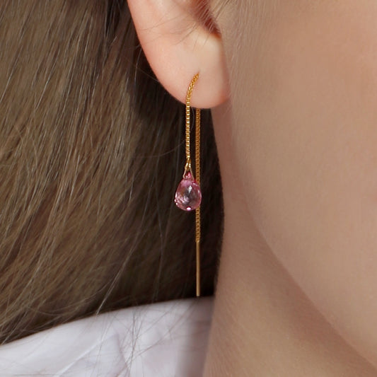 Pink Topaz Drop Threader Earrings