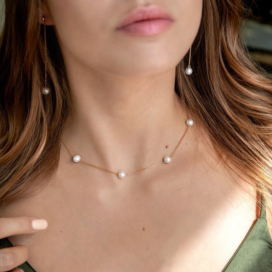 Dainty Pearl Necklace Choker with 14k Gold Chain · LUNA