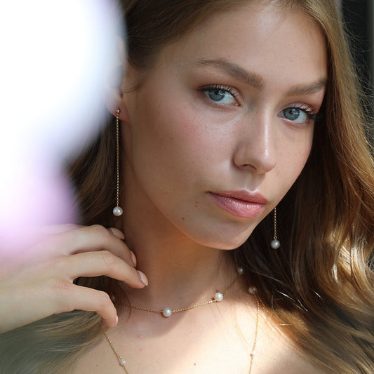 Long Pearl Necklace with 14k Gold Chain · LUNA