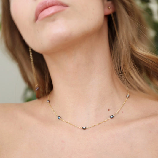 Dainty Black Pearl Necklace Choker with 14k Gold Chain · JUNO