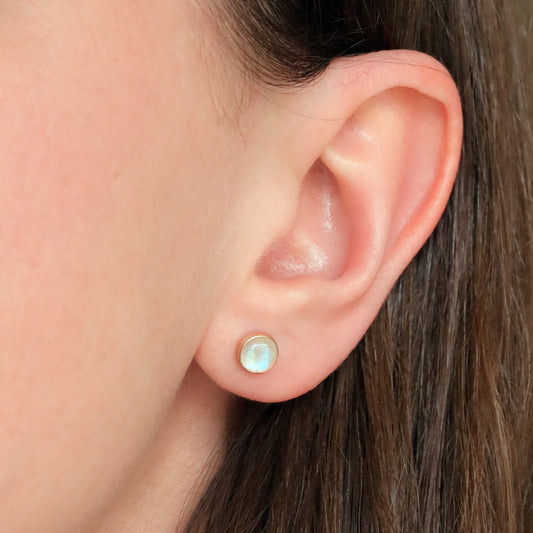Rainbow Moonstone Stud Earrings, Rose Cut
