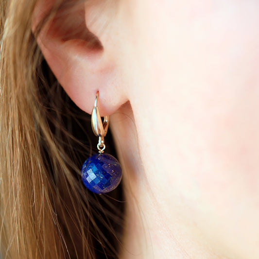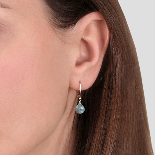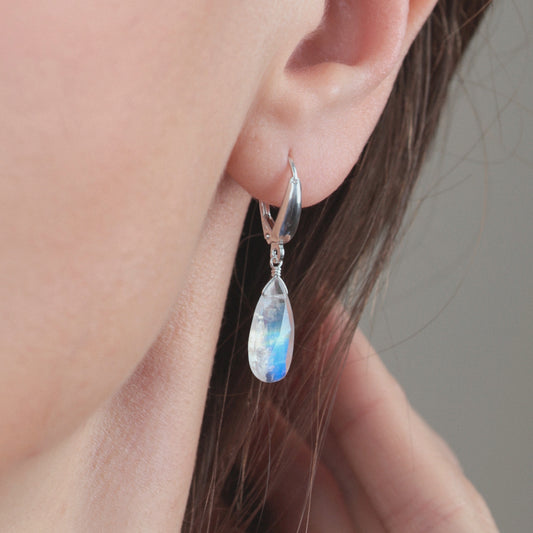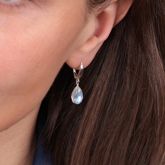 Large Rainbow Moonstone Huggie Earrings in 14k or 18k Gold