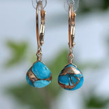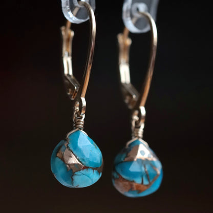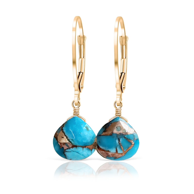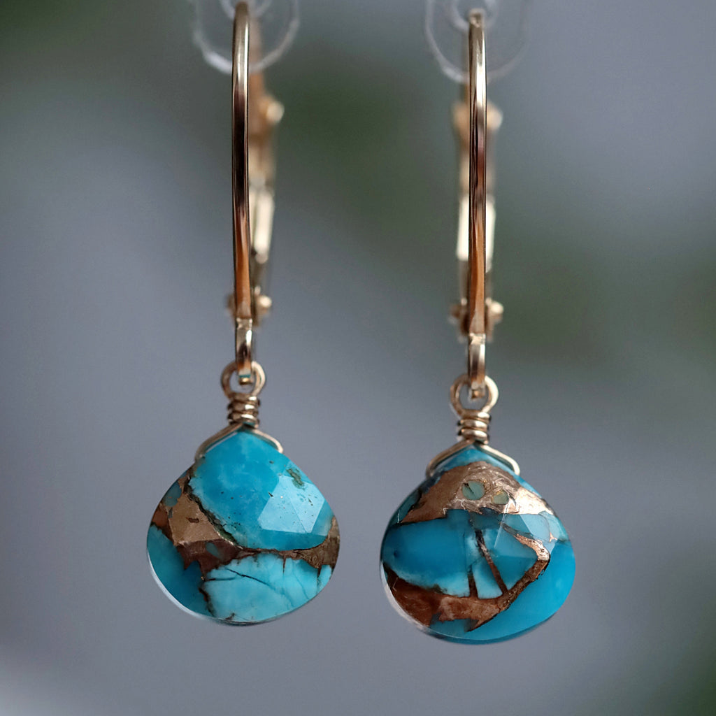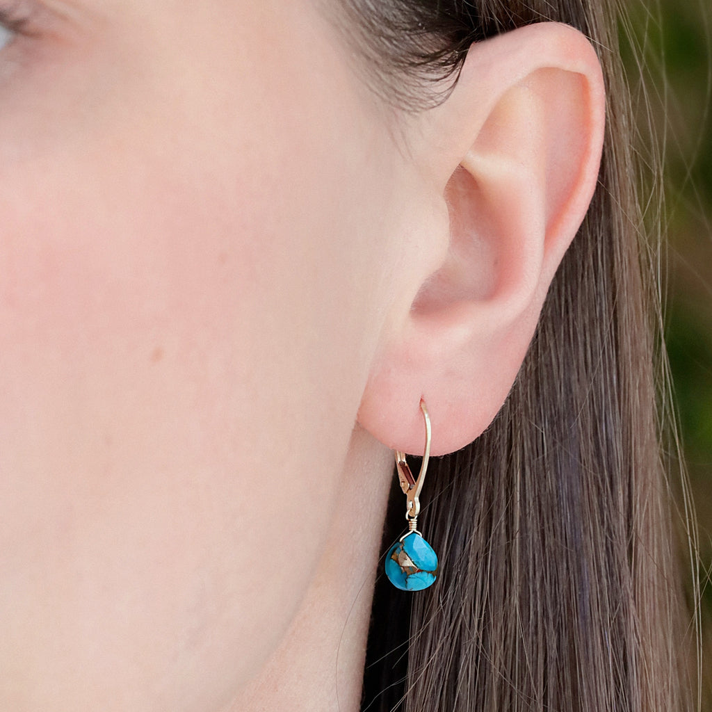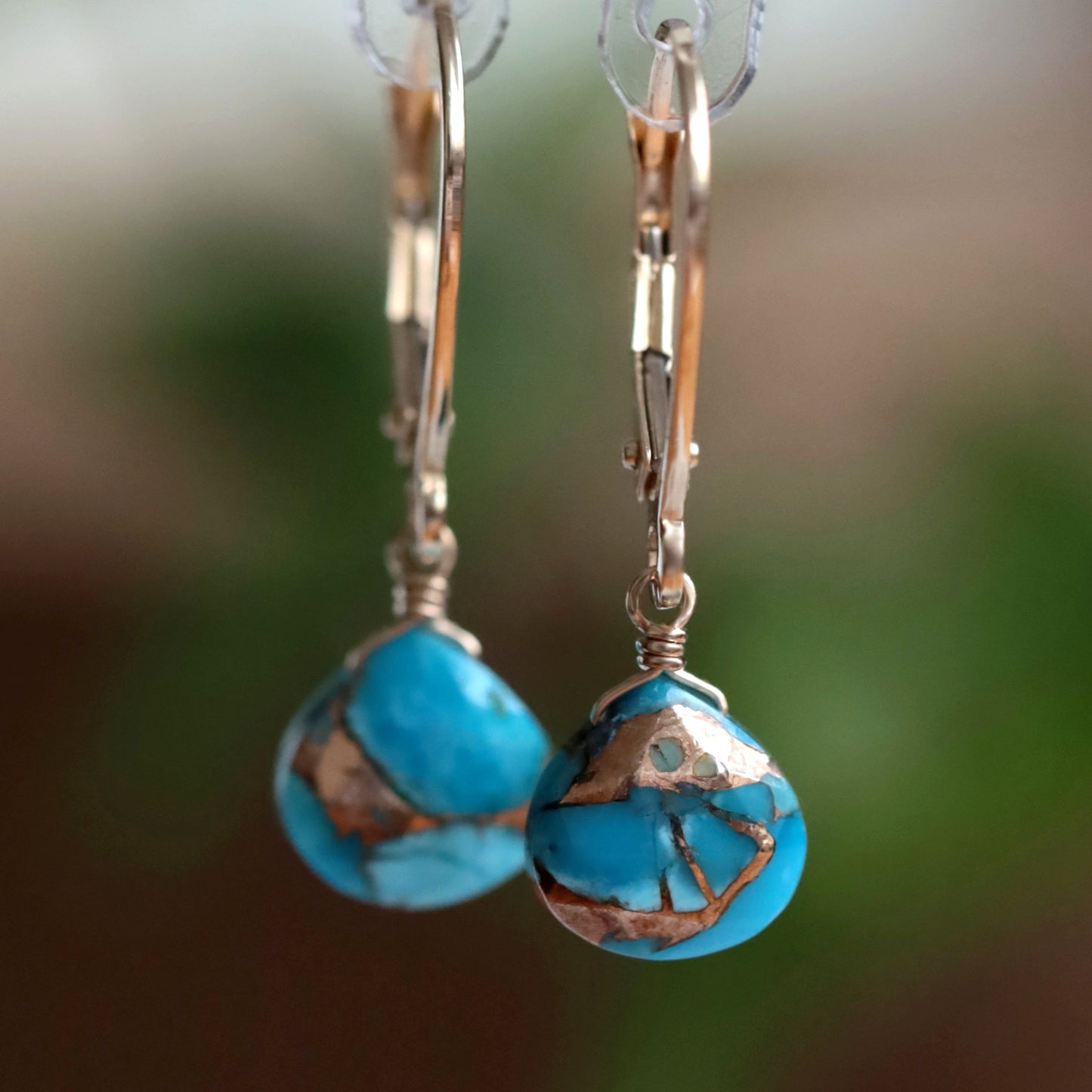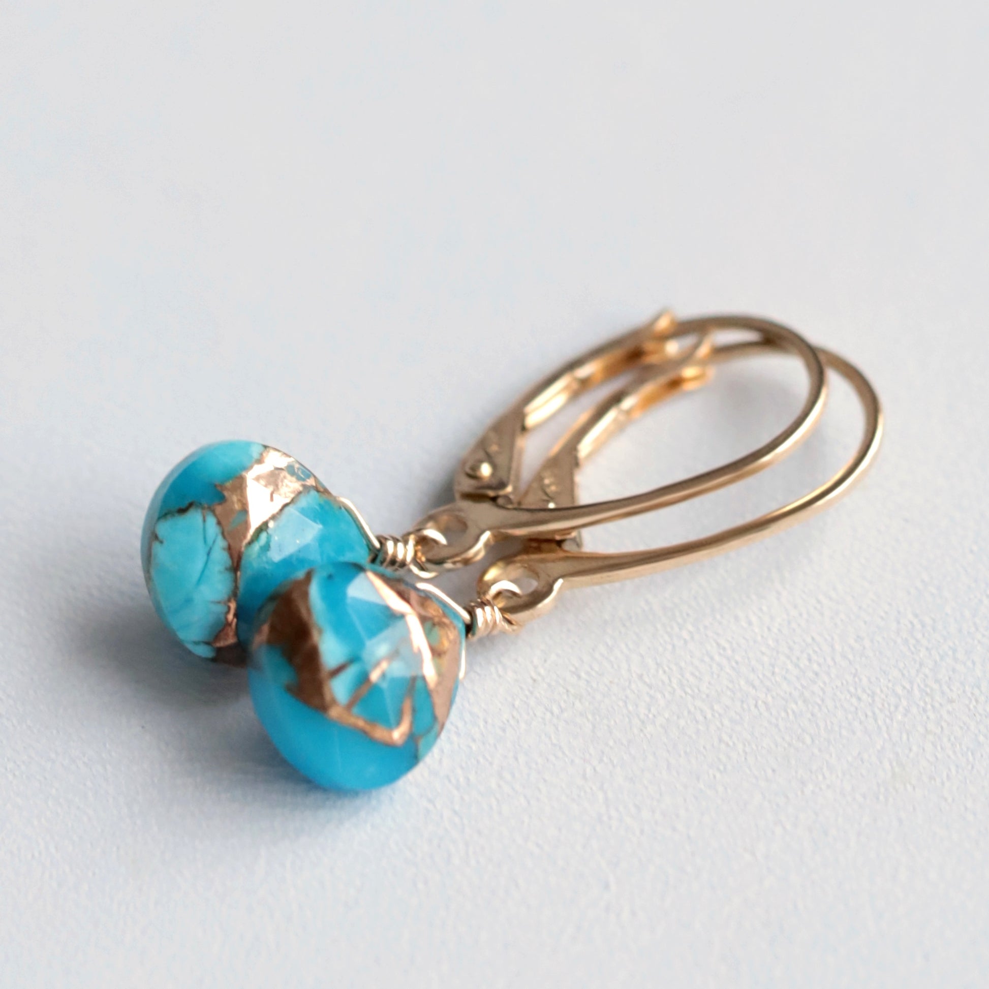 Natural Mojave Turquoise Dangle Earrings are handcrafted in 14k Gold.