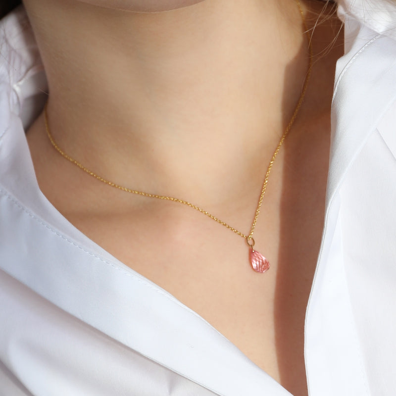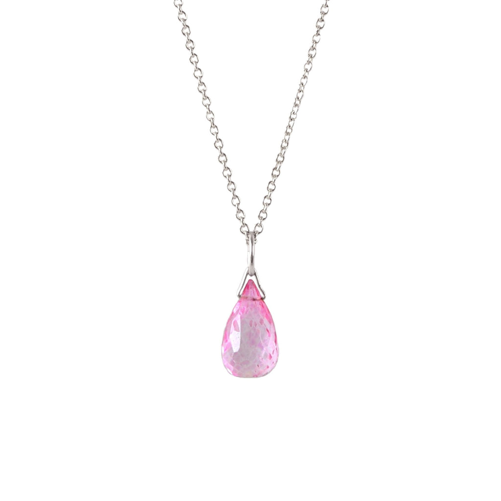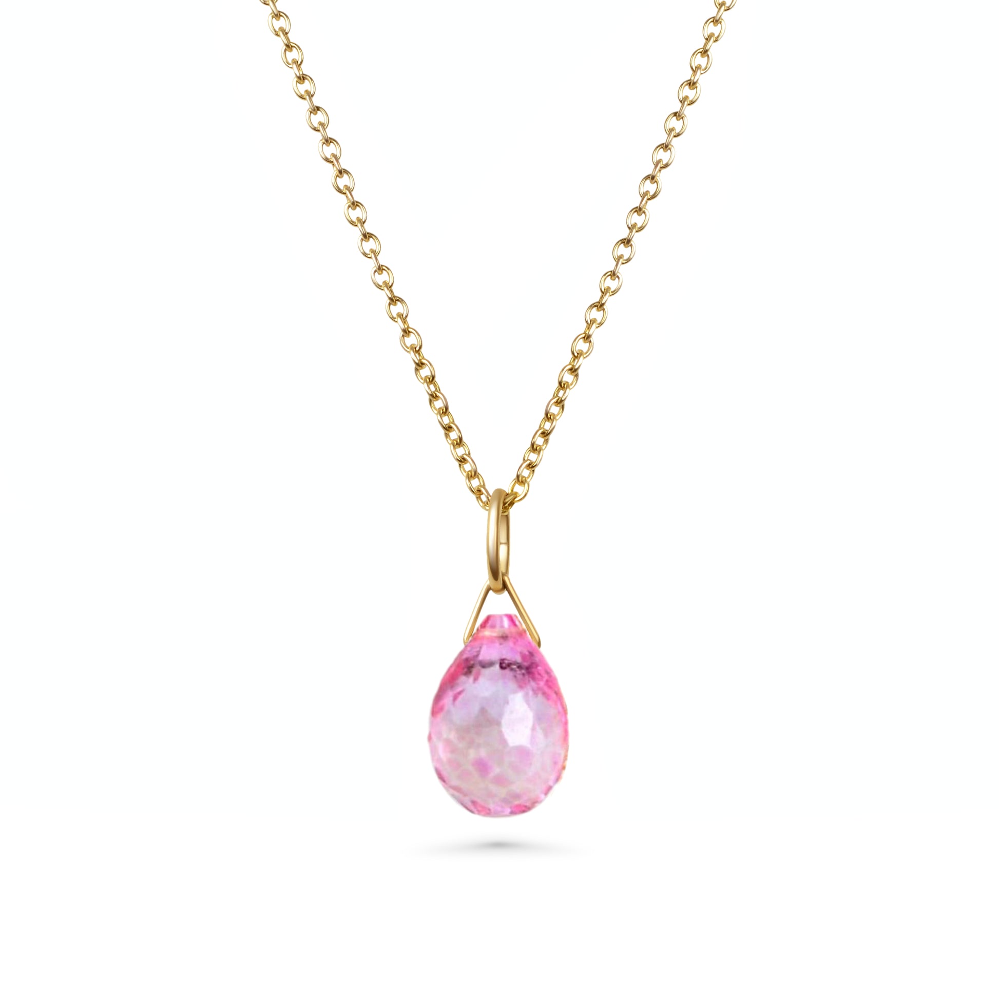 This delicate Pink Topaz Necklace is an ethereal beauty, featuring a drop-shaped Pink Topaz pendant gracefully suspended from a delicate chain with adjustable lengths of 16" and 18".