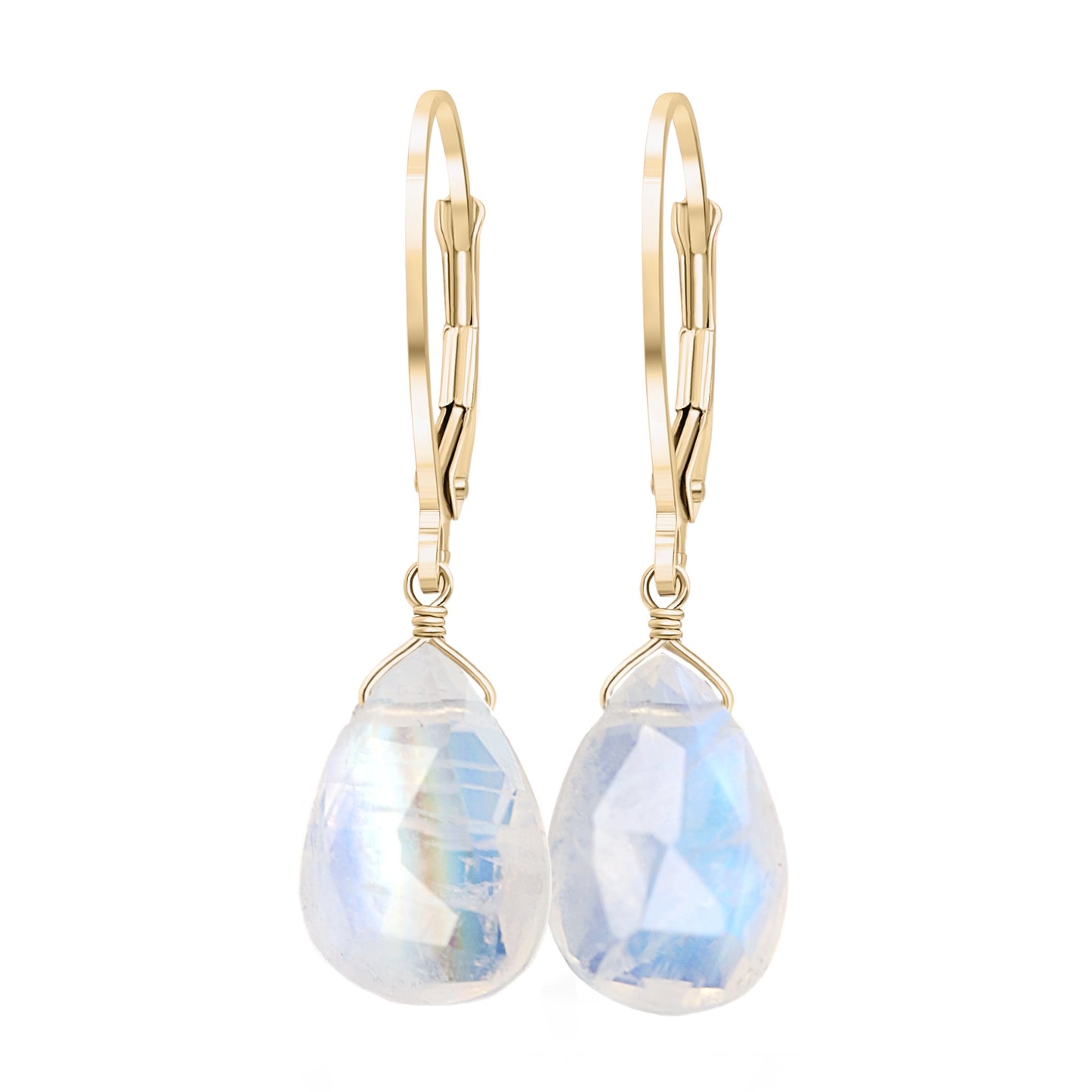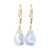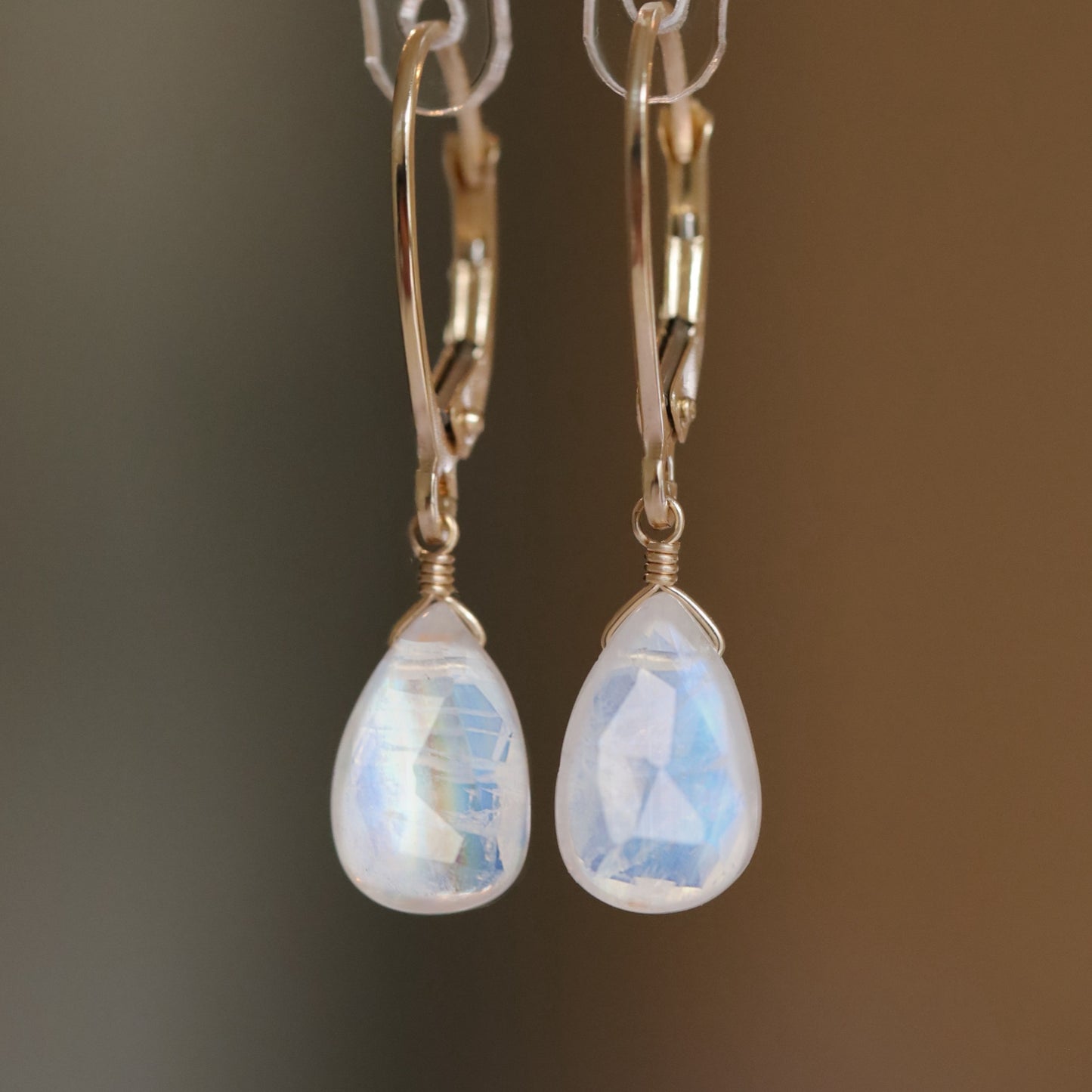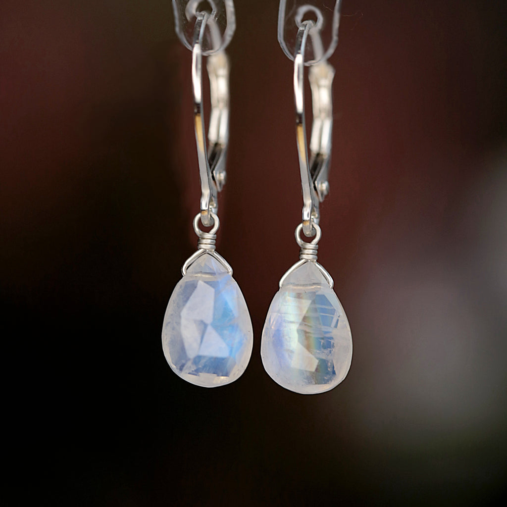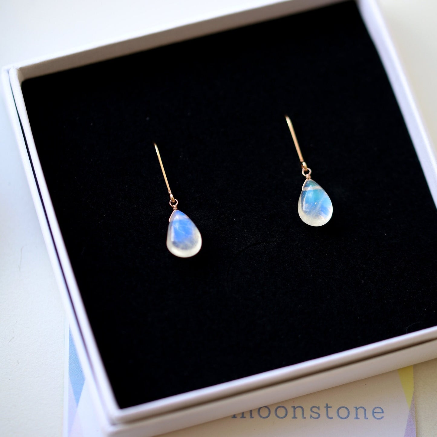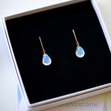 Handmade dangle earrings feature Natural Rainbow Moonstone in a pear-cut shape. Bright, versatile gemstone earrings will add dainty yet colorful accents to your look, enhance your mood, and are suitable for every day. Want to pick your stone? Send us a message on Instagram